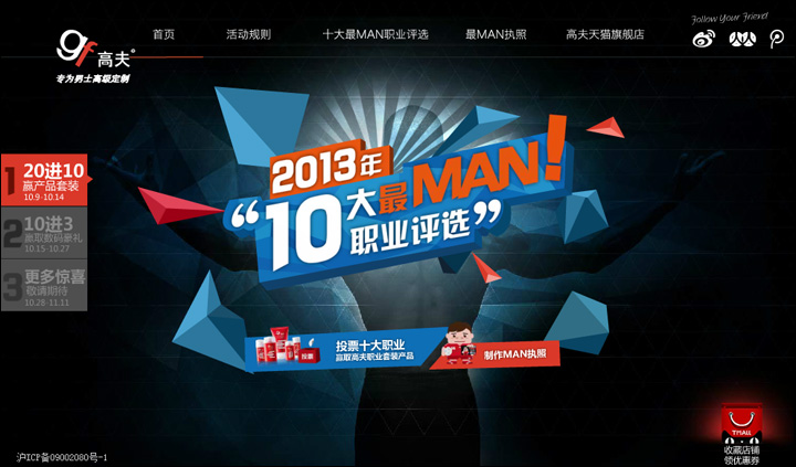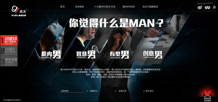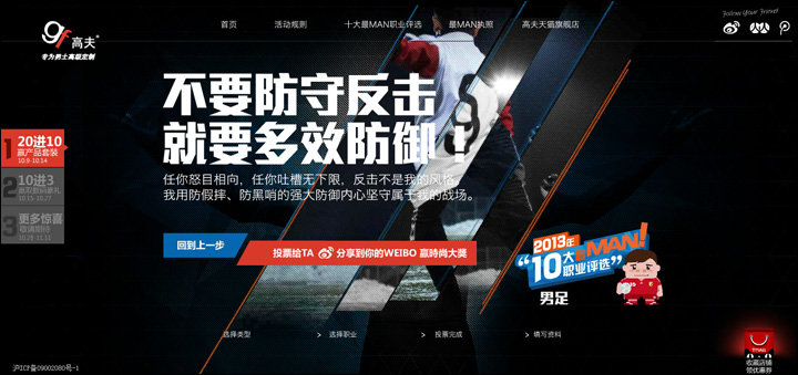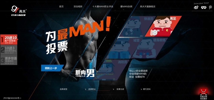 市場上唯一“專為男士高級定制”的個人護理品牌——高夫,在網(wǎng)絡打造“最MAN十大男性職業(yè)”事件,吸引消費者關(guān)注并積極參與到活動中,在網(wǎng)絡掀起最MAN職業(yè)的話題和熱潮。