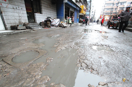 昨天,記者來(lái)到位于四季陽(yáng)光小區(qū)西門(mén)外的這條支路,看到道路破損確實(shí)嚴(yán)重,沒(méi)走上幾步就出現(xiàn)一個(gè)大坑,有的坑中積滿了臟水,有的坑中填了些碎煤渣,巷子旁的一家幼兒園門(mén)前,幾只雞不停地啄著坑里的土。“這條‘鬧心路’,下雨天不知道滑倒了多少人。”長(zhǎng)年在路口擺地?cái)傎u(mài)些小雜貨的秦大媽說(shuō)。 “這條路連著土鍋一條街和涂山路,是一條老路,曾經(jīng)叫南崗二路,每天有數(shù)萬(wàn)人經(jīng)過(guò)這里。”高大姐在這條路上開(kāi)了8年的小賣(mài)部,小店里常備一把手電筒,就怕夜里摔倒,她說(shuō)最怕下雨天,“一下雨我就發(fā)愁,積水坑接二連三,顧客來(lái)買(mǎi)點(diǎn)東西還要蹚著泥水過(guò),誰(shuí)愿意來(lái)呢!經(jīng)常走這條路的周邊群眾都盼著能夠盡早修一修。
