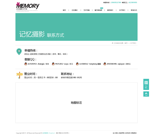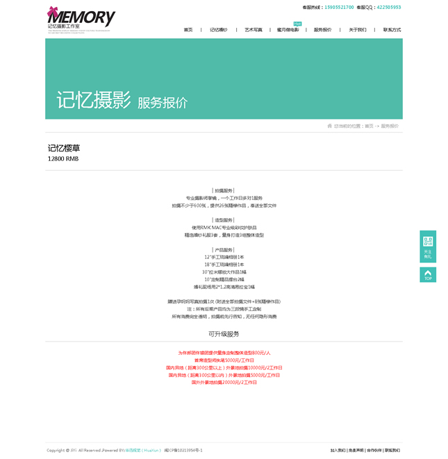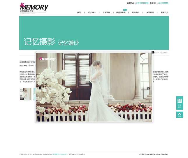 記憶視覺攝影有限公司(簡稱:記憶攝影)記憶攝影正式成立于2008年,集頂尖攝影、造型妝容和后期特效專業(yè)力量于一體,是中國首批開創(chuàng)外景旅行式婚紗攝影的工作室之一記憶攝影一直秉承“一對一的精致拍攝”服務理念。在整個拍攝過程中專業(yè)的攝影師、化妝師都會至始至終跟隨客戶,顧客可以隨時和拍攝組進行溝通和交流,不斷的創(chuàng)新獨特的拍攝方式為新人打造真正屬于自己的獨一無二的婚紗照片。做到真正的人性化,同時在更多程度上保證了照片的完美質量,附加一份完美體驗。